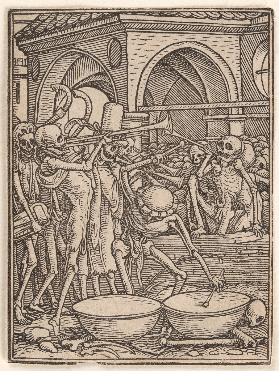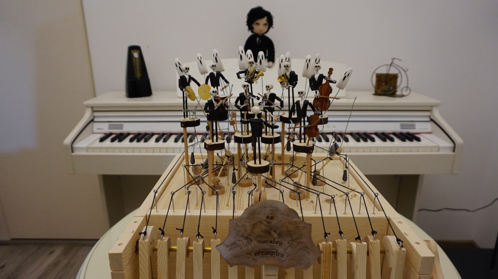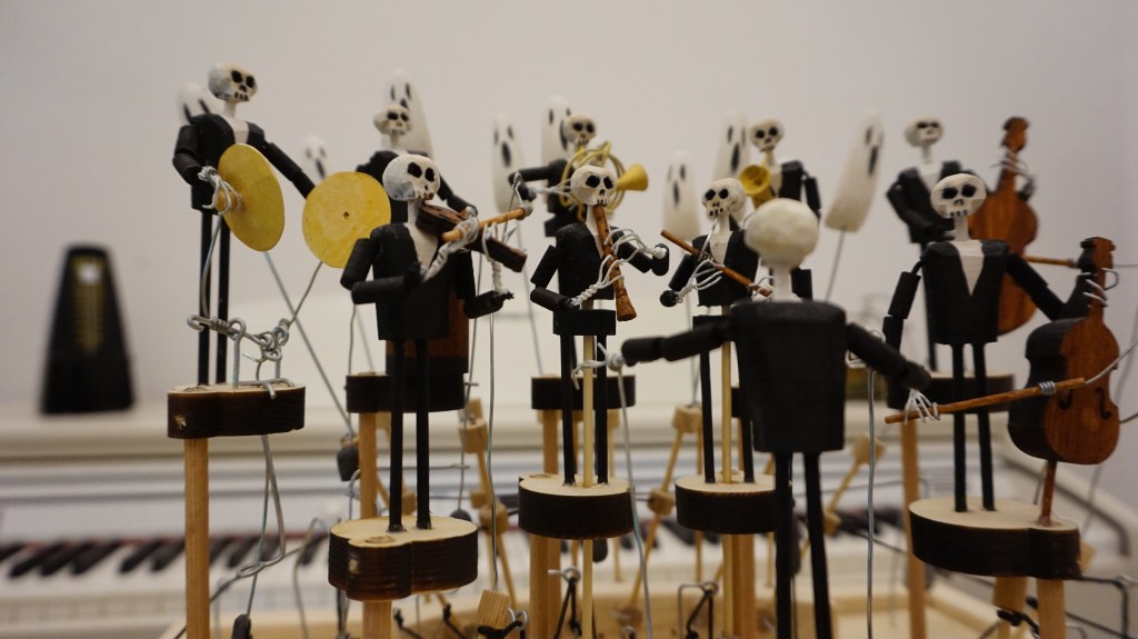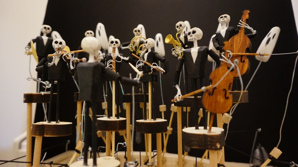 De la seria de xilogravuri din 1525 – Dansul Mortii de Hans Holbein, la desenele animate Dansul scheletelor din 1929 ( Silly symphonies), de la Concerto macabre (compus de Bernard Herrmann in 1944 pentru filmul Hangover square) la automatul de lemn Macabra orchestra din 2024, a lui Amedeo Capelli, Moartea nu inceteaza sa fascineze.